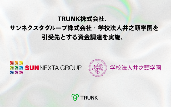 TRUNK株式会社が、サンネクスタグループ株式会社、学校法人井之頭学園を引受先とする資金調達を実施。