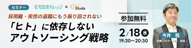 【参加無料】人手不足に悩む訪問診療クリニック向け「『ヒト』に依存しないアウトソーシング戦略」オンラインセミナー開催