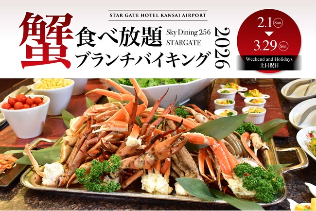 関西国際空港の対岸にある地上256mの超高層ランドマークタワー、スターゲイトホテル関西エアポート(所在地:大阪府泉佐野市りんくう往来北1番地)は、54階スカイダイニング256「スターゲイト」では、2026年2月1日(日)より、週末の朝を贅沢に彩る「蟹食べ放題ブランチバイキング」を開催いたします 。