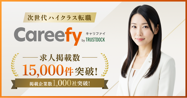 株式会社TRUSTDOCK(東京都中央区、代表取締役:千葉 孝浩)が展開する、ハイクラス向けダイレクトスカウトサービス「Careefy」(キャリファイ) は、2025年12月24日(水)、求人掲載数が15,000件を突破したことをお知らせいたします。
