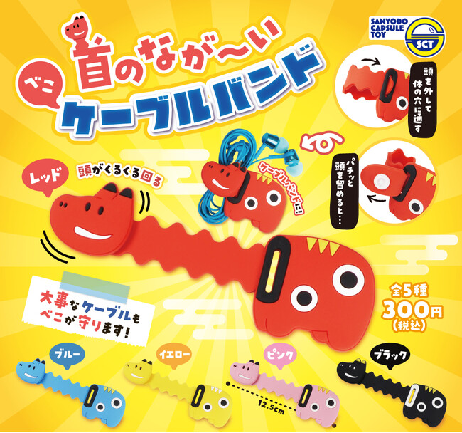縁日商材をはじめとする玩具等の製造販売を行う株式会社三洋堂(本社:愛知県岩倉市、代表取締役:折小野 嘉輝)は、カプセルトイの新商品『首のなが~いべこケーブルバンド』全5種を、2026年2月9日(月)より全国のカプセルトイ自動販売機で1回300円(税込)にて順次発売を開始いたします。