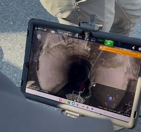 ● 行田市内でのドローンを活用した下水道管路内点検の様子