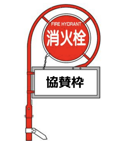 [画像2: https://prcdn.freetls.fastly.net/release_image/124122/17/124122-17-423cf0023b18055fcf09890149f3c123-554x618.png?width=536&quality=85%2C75&format=jpeg&auto=webp&fit=bounds&bg-color=fff ]消火栓標識下部の枠内に看板が入ります