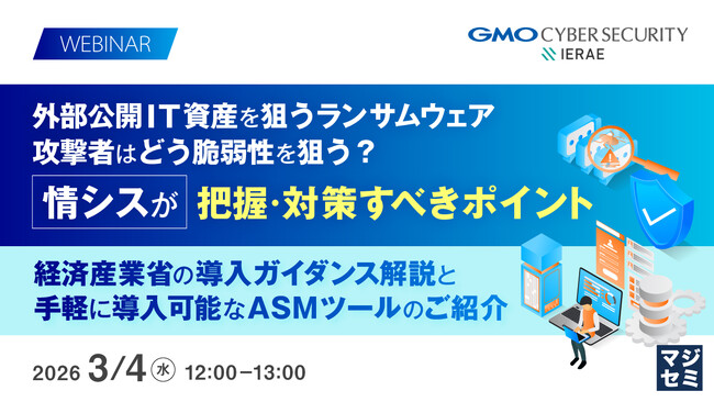 マジセミ株式会社は「外部公開IT資産を狙うランサムウェア、攻撃者はどう脆弱性を狙う? 情シスが把握・対策すべきポイント」というテーマのウェビナーを開催します。
