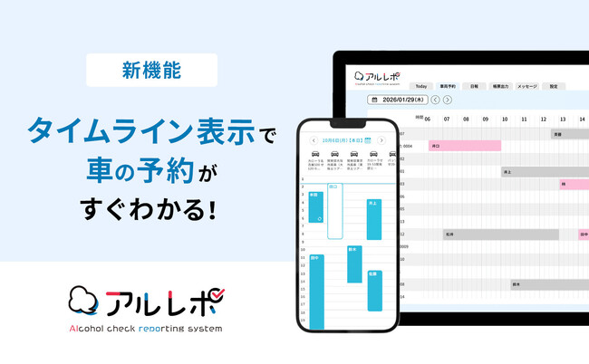 アルコールチェック管理サービス「アルレポ」を提供する「ナビッピドットコム株式会社」(本社:東京都中央区、代表取締役社長:篠崎 登)は、社用車の予約状況を確認できる「車両予約機能」を2026年2月19日から提供開始しました。