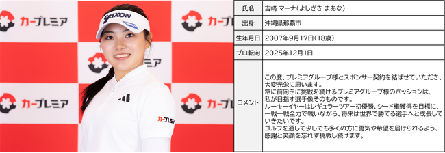 自動車に関する複合的なサービスを提供するオートモビリティ企業のプレミアグループ株式会社(本社:東京都港区、代表取締役社長 CEO:柴田洋一、以下「当社」)は、プロゴルファーの吉崎マーナ選手と新たにスポンサー契約を締結いたしました。