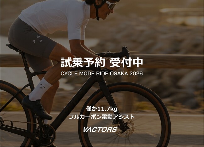 合同会社Rico(本社:滋賀県、代表社員:志賀 美之)は、車体重量約11.7kgを実現した日本発のフルカーボン電動グラベルバイクVACTORS「EX ONE」の一般向け試乗会を、2026年3月7日(土)~3月8日(日)に大阪で開催されるCYCLE MODE RIDE OSAKA 2026 に出展し、次世代電動アシスト自転車「EXONE」の試乗体験を実施いたします。