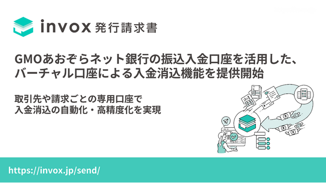 「invox発行請求書」において、GMOあおぞらネット銀行の振込入金口座を活用した、バーチャル口座による入金消込機能の提供を開始