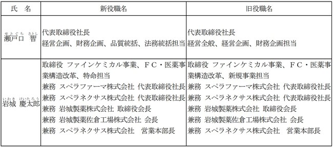 取締役の委嘱業務の変更に関するお知らせ
