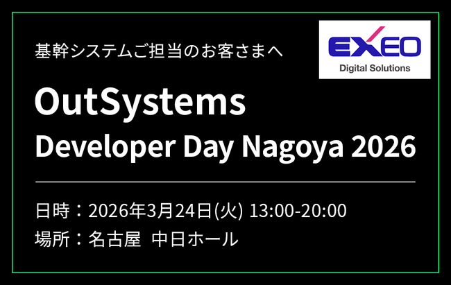 【名古屋開催】エクシオ・デジタルソリューションズ、OutSystemsエンジニア向けイベント「Developer Day Nagoya 2026」にブース出展