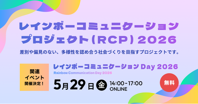 プロジェクトを記念し、2026年5月29日(金)14:00~17:00 オンラインにて、企業や一般の方が参加できるダイバーシティイベント「レインボーコミュニケーションデー 2026」を開催します(参加費無料)。
