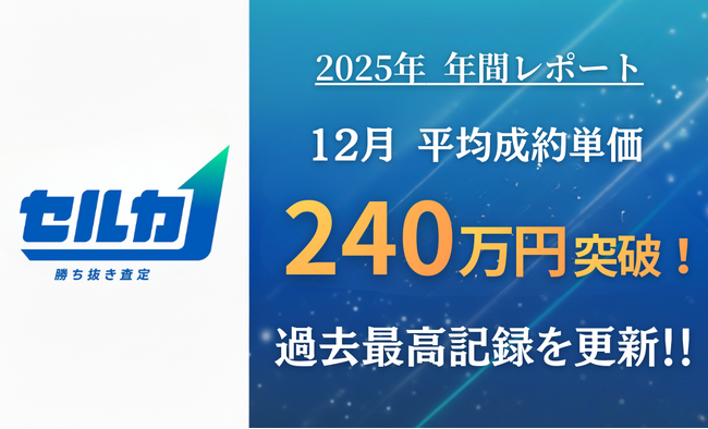 【2025年 年間レポート】勝ち抜き査定「セルカ」、平均成約単価が12月に過去最高の240万円を突破!