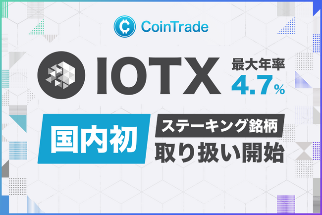 ステーキングサービス「CoinTradeStake」において 新規暗号資産アイオーテックス(IOTX)の取扱いを開始