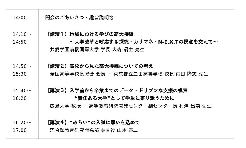 対象 :大学入試の企画・業務に携わる教職員、または関心を持つ高校・大学の教職員