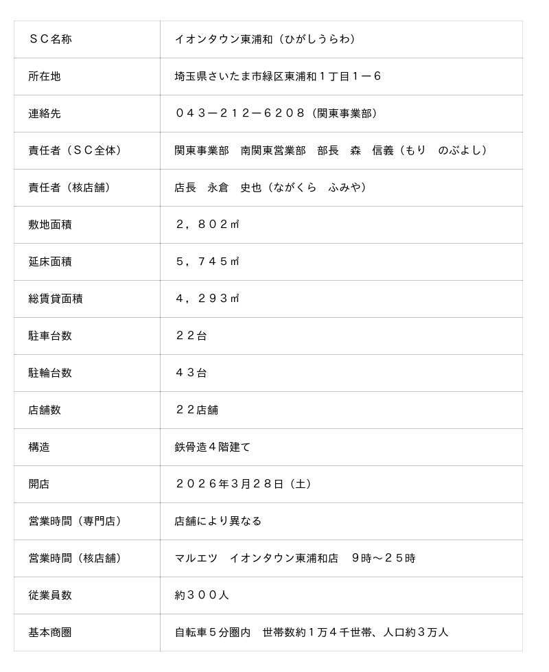 <イオンタウン東浦和施設概要>
