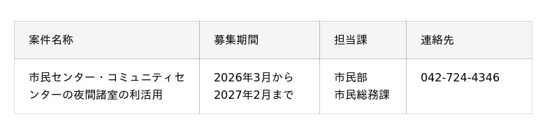 午後5時30分から午後10時までの時間帯に、各施設に設置している部屋を活用して利用率の向上につながる提案を募集します。