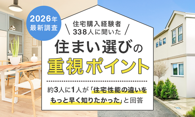 【2026年最新調査】住宅購入経験者338人に聞いた「住まい選びの重視ポイント」ランキング|約3人に1人が「住宅性能の違いをもっと早く知りたかった」と回答