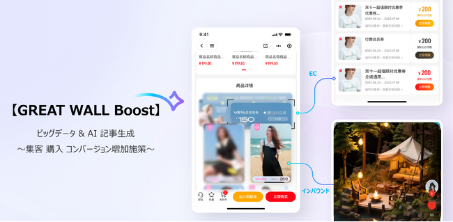 日中間を中心にAIおよびビッグデータを活用したインバウンド・越境EC事業を手掛けるKENTOSHI株式会社(本社:東京都)は、良質な記事コンテンツを圧倒的なコスパで生成し、集客や購入を促進する【GREAT WALL Boost】をリリース。中国向け施策におけるコンバージョン率の向上を促進します。
