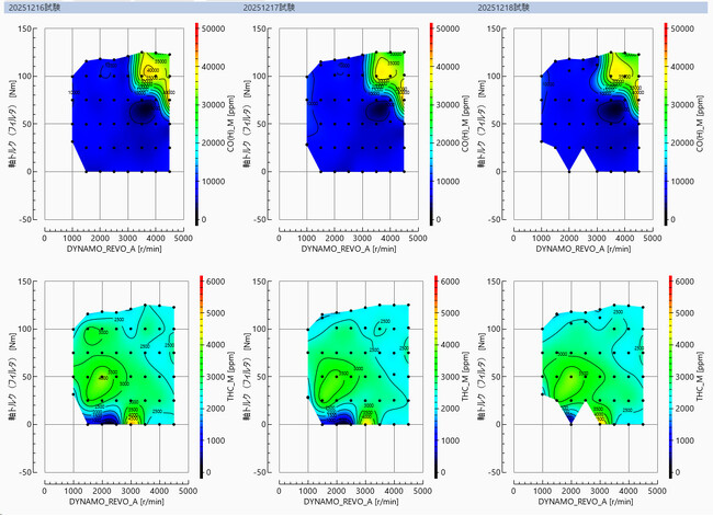 XYプロットは、試験の目的に合わせてデータを自動で仕分けし、散布図として表示する機能を搭載しています。コンターマップおよびデジタルマップは、インポートした3次元データが格子状にない場合でも補間処理を行うことで、等高線や数値による補間結果を確認できます。