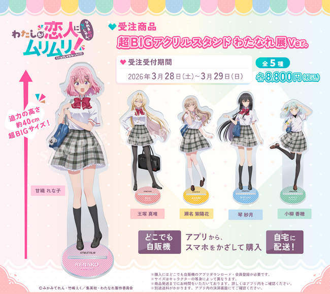 受注受付は、3月11日~22日:わたなれ展(https://www.dena-event-info.com/watanare/goods/)、3月28日~29日:AnimeJapan(https://dena-ent-goodspage.mbok.jp/aj-goods2026)で行っております。