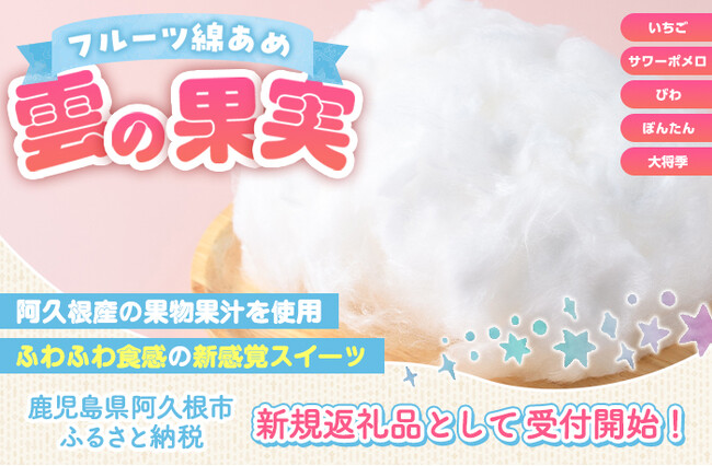 LR株式会社(本社:鹿児島県日置市、代表:末永祐馬)は、ふるさと納税サポートを担う鹿児島県阿久根市において、松永青果の「フルーツ綿あめ 雲の果実アソートセット」の返礼品登録を行いました。