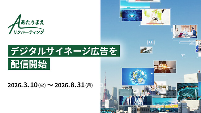 当社は、こうした採用活動に悩む企業様に貢献するため、あたりまえリクルーティングを通じて採用活動における「基本の徹底」を支援してまいりました。今回のデジタルサイネージ広告配信は、これまでオンラインを中心に展開してきた情報発信をオフラインにも拡大し、採用に本気で向き合う経営者・人事担当者に対して、より多くの接点を創出することを目的としています。