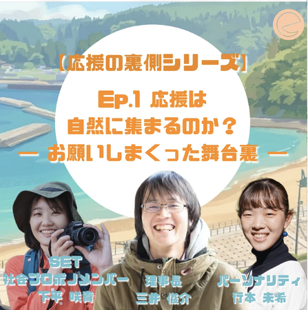 出演は、パーソナリティのSET社会人プロボノメンバー・行本未希、理事長・三井俊介、クラファンの設計と運営を担ったプロボノメンバー・下平咲貴の3名。「思想・設計・問い」の三角形で、応援が生まれる構造を立体的に語り合います。