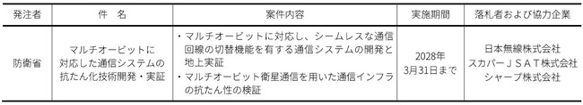 日本無線が選定された防衛省の公告「マルチオービットに対応した通信システムの抗たん化技術開発・実証」の推進に向け、日本無線・スカパーJSAT・シャープが連携