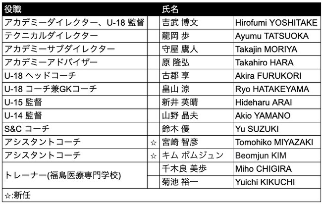 2026 シーズンアカデミースタッフ体制についてのお知らせ