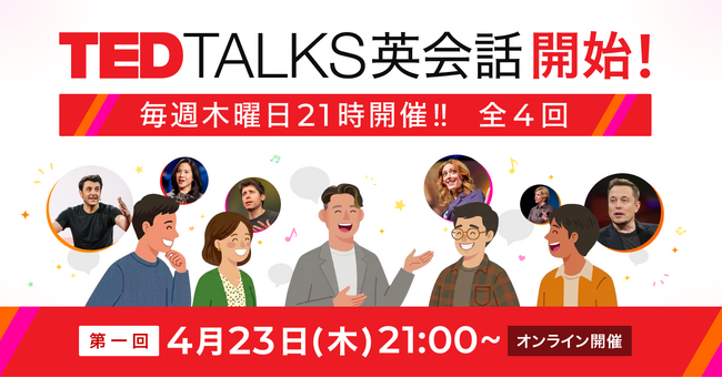 TED TALKSを題材にした、ファシリテーターのもと参加者全員で意見を交わすアウトプット型英会話コミュニティ「TED TALKS 英会話」の提供開始!
