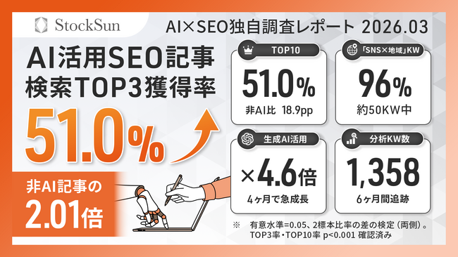StockSun株式会社「AI×SEO 独自調査レポート 2026年版」を発表