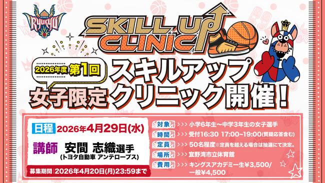 キングスアカデミーでは4月29日(水)、宜野湾市立体育館にて「2026 年度第1回女子限定スキルアップクリニック」を開催いたします。