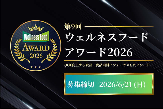 [画像2: https://prcdn.freetls.fastly.net/release_image/119240/8/119240-8-512792bc2576cda9f45317da52488d05-383x383.png?width=536&quality=85%2C75&format=jpeg&auto=webp&fit=bounds&bg-color=fff ]ウェルネスフードアワードは、QOL(クオリティーオブライフ)を向上する食品および食品素材にフォーカスしたアワードです。展示会「ウェルネスフードジャパン」*1内にて開催され、2026年で第9回目を迎えます。 本アワードでは、「独自性・ストーリー性」「おいしさ・食べやすさ」「科学的根拠」「安全性」などの観点から審査を行い、日常生活に取り入れやすく、長期的な健康づくりに貢献するウェルネスフードの普及を目指しています。