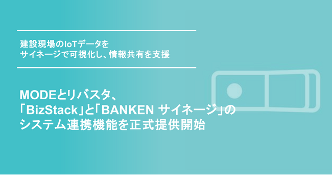 現場データの活用を支援するシリコンバレー発スタートアップMODE, Inc.(本社:米国カリフォルニア州、日本支店:東京都千代田区、CEO:上田 学、以下 MODE)と株式会社リバスタ(本社:東京都江東区、代表取締役:高橋巧、以下 リバスタ)は、MODEが提供する「BizStack(ビズスタック)」と、リバスタが提供する建設現場ICT機器ソリューション「BANKEN(バンケン)」のデジタルサイネージ「BANKEN サイネージ」のシステム連携機能(以下 本機能)を、2026年4月20日より正式に提供開始しました。(※1)