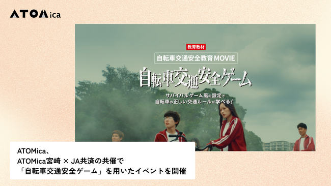 株式会社ATOMicaは、全国共済農業協同組合連合会(以下、JA共済)との共催で、2026年5月21日(木)に、運営するコワーキング施設「ATOMica宮崎」にて、自転車の交通ルールを楽しく学ぶイベント『自転車交通安全ゲーム体験会』を開催いたします。
