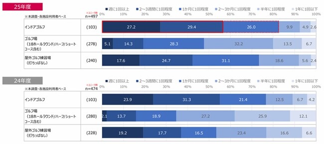 また、特に30代・40代において利用頻度の伸びが顕著であり、インドアゴルフ が現代ゴルファーの主要な練習環境となりつつあることがうかがえます。