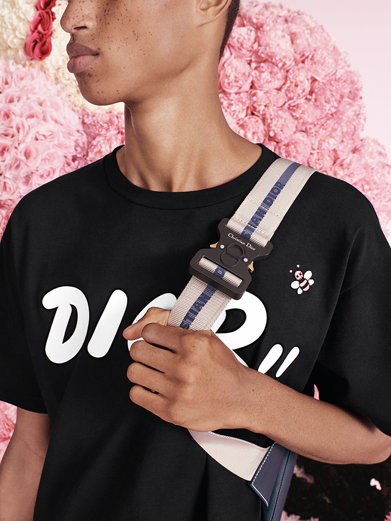 キム・ジョーンズが初めて手がけた同コレクションは、「自由と遊びを心から楽しみ、情熱と少しばかりのアイロニーを持った現代の男性のためにデザインした」という。キム・ジョーンズは、アーティストKAWSにディオールのアイコンである“BEE”モチーフとディオールロゴの遊び心あふれる新デザインを依頼。Tシャツ、ブルゾン、パンツ、バックパック、ボディバッグにプリントした。
