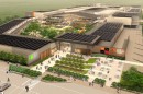 オカザキマーケットは店舗を飲食、食物販中心の構成とし、市場のような空間に仕上げる。屋外広場は音楽やスポーツイベントに対応可能なステージに加え、人工芝エリアやドッグランも配置、来店客がくつろぎ、楽しめる体験の場所とする。