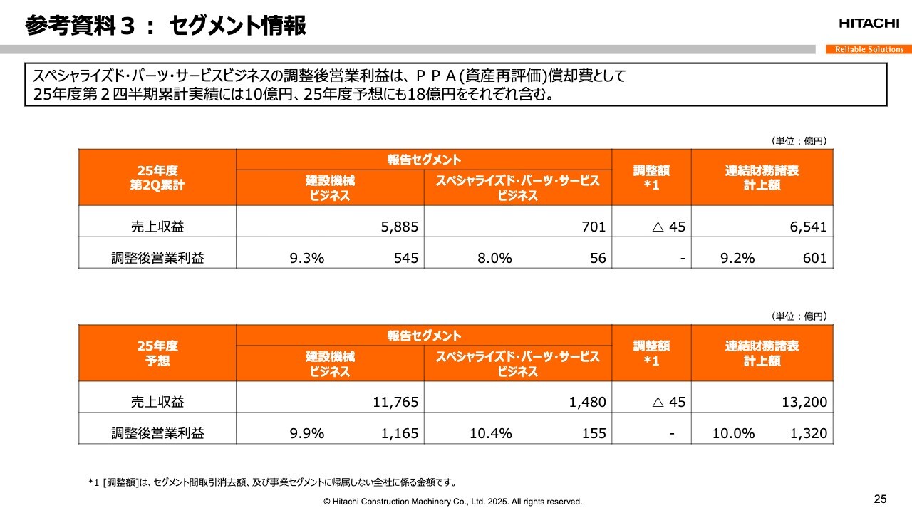 依然として不透明な状況は続いています。例えば、今回の上期実績では、先ほど申し上げたコンストラクションを主体とした新車需要が上振れた一方で、部品サービス、特にマイニングのメンテナンスについては先送り状況が引き続き見受けられます。これらの要因を踏まえ、リスクを抑えて、さらに関税の追加影響なども考慮し、このようなかたちで予想を立てました。