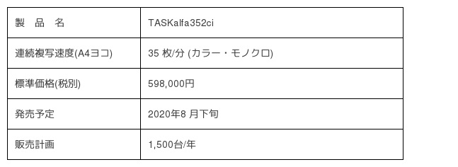 京セラ株式会社のグループ会社である京セラドキュメントソリューションズジャパン株式会社(社長:長井 孝)は、新製品カラーA4複合機「TASKalfa352ci」を8月下旬より発売いたします。