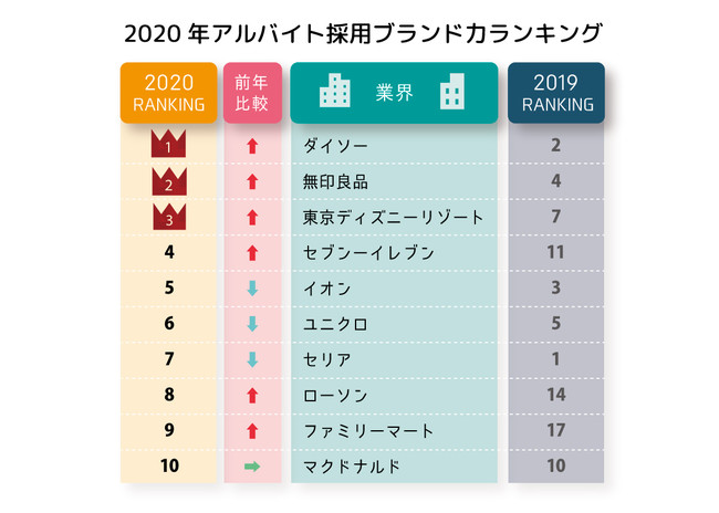 コロナ禍のアルバイトブランド1位はダイソー!コンビニ人気も復活!【2020年アルバイト採用ブランド力調査】