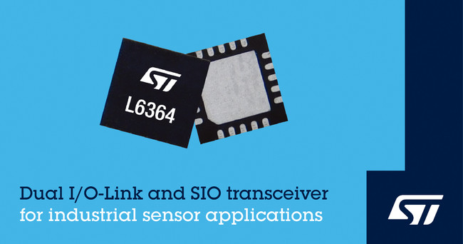 STマイクロエレクトロニクス(NYSE:STM、以下ST)は、柔軟性に優れたデュアルIO-Link・SIOトランシーバ「L6364」を発表しました。同製品は、出力電流を2倍にしてより高性能の通信を実現できるデュアル通信チャネルのほか、DC-DCコンバータおよびデュアル・モードのUARTを搭載しています。