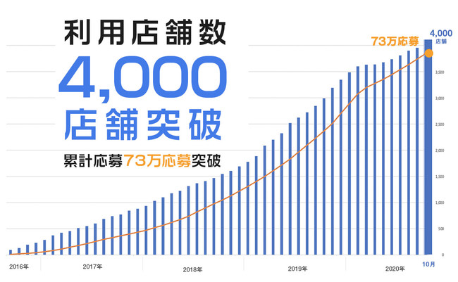 2016年のサービスローンチ以降、関東・東海・関西の全エリアに加え、福岡県・広島県とサービス展開エリアを急速に拡大してまいりました。該当エリアのコンビニエンスストアで大手3チェーン(※)が運営する店舗においては、2019年5月に2000 店舗を達成して以来、同年12月に3000店舗、そして2020年11月に4000店舗を達成と約1年半で2倍へと急増し、利用率も10%を突破しています。