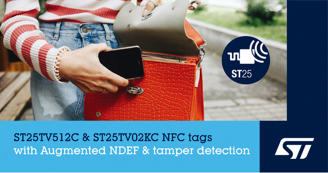 STマイクロエレクトロニクス(NYSE:STM、以下ST)は、拡張NDEF(NFC Data Exchange Format)機能とタンパ検出機能を搭載したNFC Type5 タグIC (1)「ST25TV512C」および「ST25TV02KC」を発表しました。これらの製品は、NFCの非接触通信を利用した、コンスーマ・エンゲージメントやブランド認知、サプライ・チェーン・マネージメント、入退管理など、革新的なアプリケーションを可能にします。