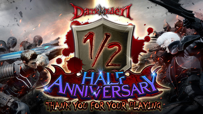 ダークエデンMは、みなさまからの多くのご支援により、この度ハーフアニバーサリーを迎えることができました。本当にありがとうございます。プレイしてくださる全てのお客様に感謝いたしますと共に、今後より一層楽しんでいただけるタイトルとなるよう運営一同精進してまいります。