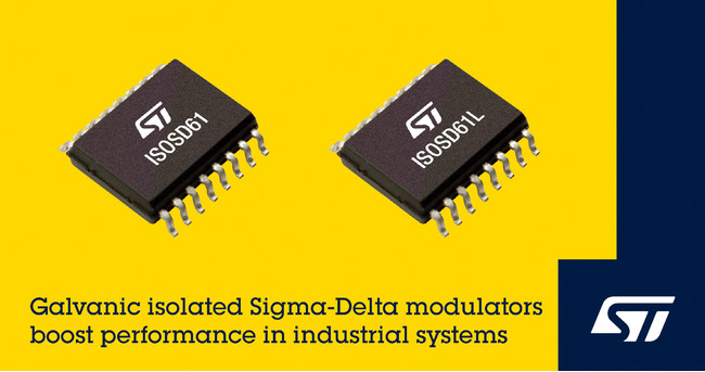 STマイクロエレクトロニクス(NYSE:STM、以下ST)は、ガルバニック絶縁型の二次ΔΣ(デルタ・シグマ)モジュレータ「ISOSD61」および「ISOSD61L」を発表しました。これらの製品は、優れた精度を備え、モータ制御やEV用充電ステーション、太陽光発電システム用インバータ、UPS(無停電電源装置)、サーバや通信機器の電源などの産業アプリケーションにおいて、性能および信頼性の向上に貢献します。