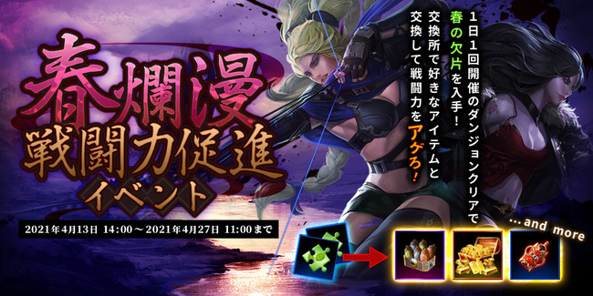 グラビティゲームアライズ株式会社(所在地:東京都中央区)は、本日2021年4月13日(火)より、スマートフォン・タブレット向けのダークファンタジーRPG『ダークエデンM』 (https://darkedenm.jp/) において、「春爛漫戦闘力促進イベント」を開催します。