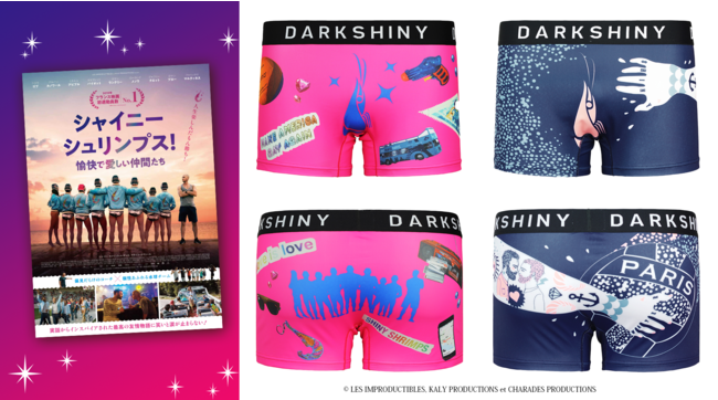 『シャイニー・シュリンプス!愉快で愛しい仲間たち』は、LGBTQ+による世界最大のスポーツと文化の祭典「ゲイゲームズ」出場を目指す、実在するゲイの水球チーム「シャイニー・シュリンプス」をモデルにした感動のヒューマンドラマ。その『シャイニー・シュリンプス!愉快で愛しい仲間たち』とDARK SHINYがシャイニーつながりでタッグを組むことに。待ちに待ったコラボデザインは、映画に登場するあのスイミングパンツのデザインと、このコラボだけの特別デザインの2種類です。