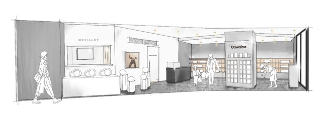 「くらしに閃き。」をキーコンセプトに展開するDawaina(ダワイナ)では、独自のスタイリングでセレクトされた照明機器、オーディオ製品、時計、知育玩具など、おうち時間や生活空間を彩るさまざまなインテリアプロダクトを取り扱っています。ショップ内には、フランスのラグジュアリーブランド、Devialet(デビアレ)の展示およびリスニングルームも備え、高品位かつゆっくりとお買い物をお楽しみいただける空間となっています。