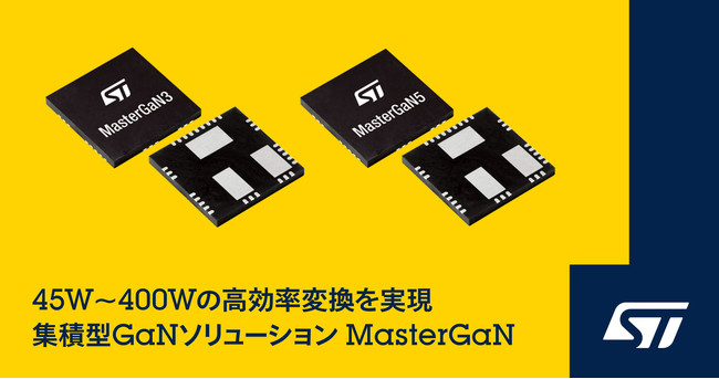 STマイクロエレクトロニクス(NYSE:STM、以下ST)は、シリコン・ベースのハーフブリッジ・ゲート・ドライバと、2つのGaN(窒化ガリウム)パワー・トラジスタを集積した世界初のシステム・イン・パッケージ(SiP)「MasterGaN(R)」に、最大45Wのアプリケーション向けの「MasterGaN3*」および最大150W向けの「MasterGaN5」を追加しました。これらの製品は、高効率の電力変換を実現するワイド・バンドギャップ半導体への移行を簡略化します。